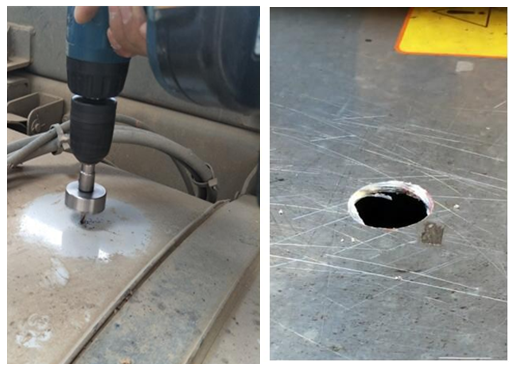 鉆孔的位置的選擇,在油箱的中心位置,鉆孔,開孔器的規(guī)格可采用φ21mm—φ28mm都可以。