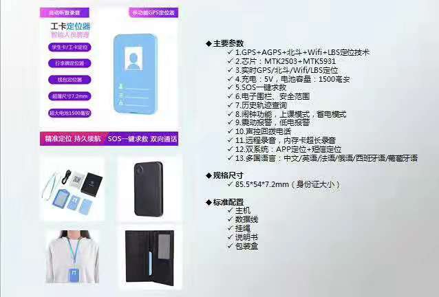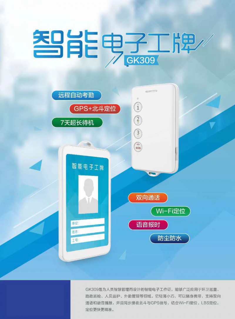 工卡定位器GK309是為人員智慧管理而設(shè)計(jì)的智能電子工作證,能夠廣泛應(yīng)用于環(huán)衛(wèi)巡查、路政巡檢、人員監(jiān)護(hù)、外勤管理等領(lǐng)域。它輕薄小巧,可以隨身攜帶,支持雙向通話和語(yǔ)音播報(bào),并且同步接收北斗與GPS信號(hào),結(jié)合Wi-Fi定位、LBS定位,定位更快更準(zhǔn)。